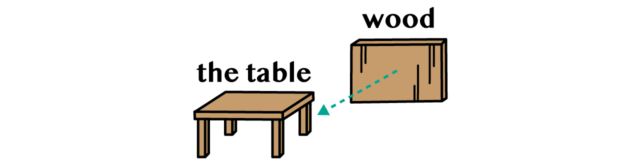 例文:The table is made of wood.(そのテーブルは木で作られています)