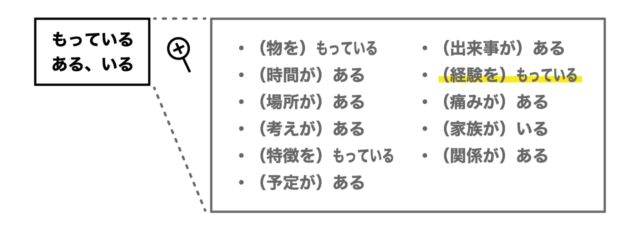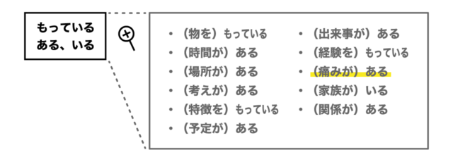 日本語の「ある、いる」に対応する場合も数多くありますが、ポイントは「主語と関係があるかどうか」です。一気に覚えるのは大変かもしれませんが、1つずつ押さえていきましょう。