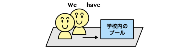 例文:We have a swimming pool in our school.(うちの学校にはプールがある)