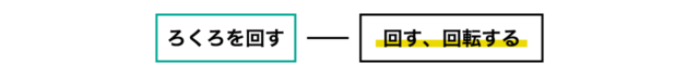 ろくろを回すイメージから「回す、回転する」という意味が出てきます。