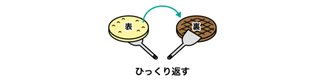ひっくり返す | It’s time to turn the pancakes. | パンケーキをひっくり返す時間です |